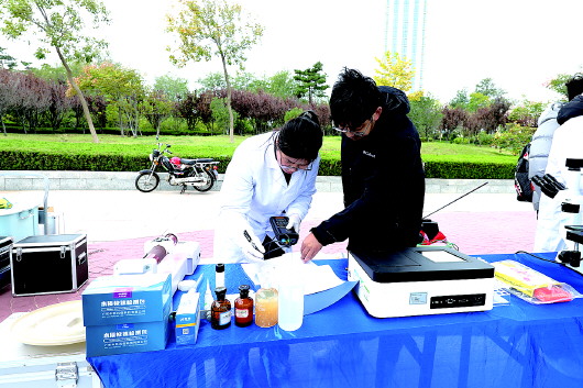 在“生态盲盒实验室”前,孩子们在烟台大学和烟台市水文中心专家的指导下,化身“生态探长”,亲手检测水质,探索水滴里的微观世界。“我们希望把实验室搬到河边,为公众科普,为城市注入高校科技力量。”烟台大学土木工程学院副教授嵇斌说。“今天,我们现场采样、现场检测、现场出结果,检测的多个项目均符合普通河道的水质要求。”烟台市水文中心水环境监测科科员王文辉表示。