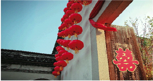 这边娶亲队伍刚走,家里的乡亲们就忙开了。贴喜字要倒着贴,取“喜到”的意思;门联得贴在门框两侧,字要红得发亮;在大门的顶上,需压上两块用红纸精心包裹的砖块,还要摆上筷子和酒盅。到处张灯结彩,红绸子在风里飘,外人远远一看,就知道这家要娶媳妇了。