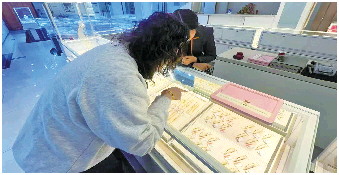 济南市民韩女士下班后,到仲宫一家金店挑选黄金饰品。