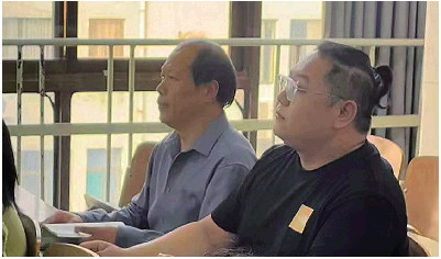 周科研(右)和父亲周伦(左)在教室一起上课。