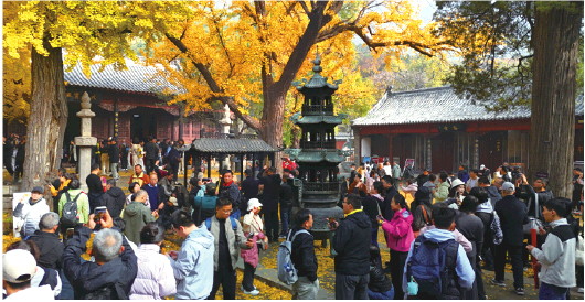 济南灵岩寺景区成为秋游济南的“人气打卡地”。