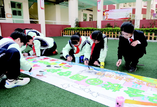 法治老师们精心设计了“转圈圈”互动问答、“掷骰子”答题闯关、“校园安全”集体彩绘等游戏环节,共同解锁了更多法律知识。活动中学生们踊跃参加,现场气氛热烈,在玩中学,在学中乐,悄然种下“尊法、学法、守法、用法”的法治种子。 (张建国)