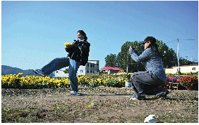 眼下又到菊花收获时,随着采摘基地知名度远播,来此打卡的游人也多了起来。每逢周末,菊花地里到处都是拍照打卡的人,游客增多带动菊花鲜食销量大增,许多回头客八斤十斤地买。
