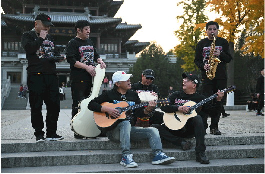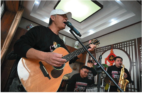 除此以外,他们还经常到处进行公益演出,他们的歌声和演奏响遍全省各地。大明湖百花洲景区里,各大舞台上,甚至村子田野间,都有他们合奏弹唱的身影。“乐队演出给别人带来快乐的同时也丰富了我们自己的生活,更重要的是我们还能在一起继续追寻音乐梦想。”张志说出了他们每个人的心声。
