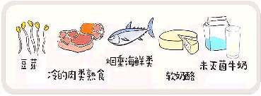 1、孕妇、老人、免疫功能低下者,应尽量避免食用高风险食品,包括:未经巴氏消毒的牛奶和奶制品;冷藏的肉酱、肝酱;冷藏的热狗、香肠及熟食肉类(除非彻底加热)。