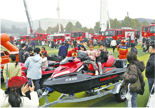 长长的云梯直冲天际,引得现场市民惊叹连连,不少小朋友踮着脚尖、睁大眼睛,满脸写着震撼。现场不少萌宝更是身着与救援服同款颜色的装扮,化身“小小消防员”,在家长的陪伴下参观体验。“孩子特别崇拜消防员,一直梦想成为一名消防战士,特意给他买了这身衣服。”一位宝妈笑着说,这是孩子第二次参加山东消防队站开放日活动,每次都能学到实用知识,收获满满。