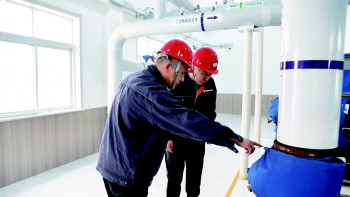 鱼台公用热力有限公司工作人员正在巡检供热设备。