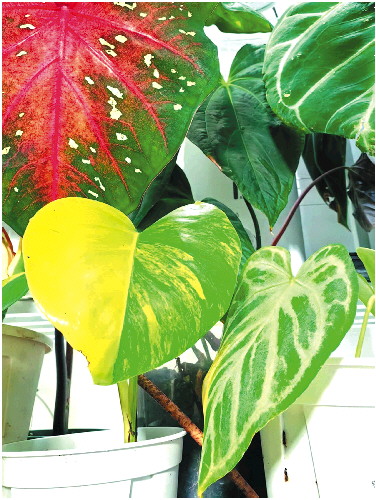 实际上,在“热植圈”,品种并非决定植物身价的唯一因素。在不少热植展上,也能看到龟背竹、花烛这类常见家居绿植的身影。但动辄几万元、几十万元的标价却显示了这些植物的不同,它们的特别之处在于“锦化”表现上。汪文俊解释,所谓“锦化”指的是植物基因突变导致的局部颜色变异现象。