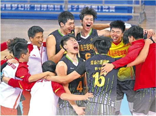 图为11月20日,在广东江门举行的十五运排球男子成年组冠亚军决赛中,山东队3比0战胜福建队,获得冠军。此前从未获得过全运会成年组男排冠军的山东队,三届全运会一次上一个台阶,本届全运会九战全胜,最终获得金牌。 新华社发