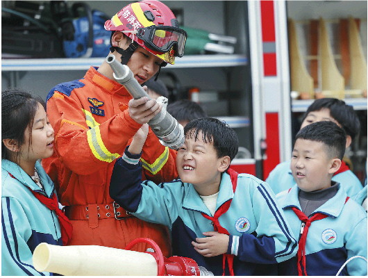 消防安全教育进校园。 张春雷 摄