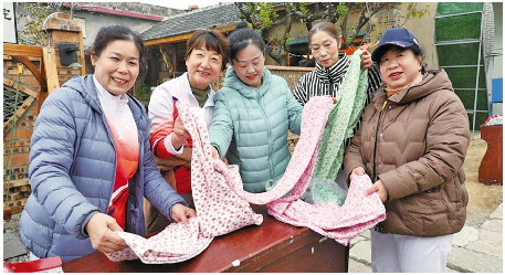 几年后,无序扩张导致产品滞销,让产业陷入低谷。痛定思痛后,村里整合家庭作坊,引导村民分工协作,织造、印染、裁剪、制衣、销售的完整产业链逐渐成型。如今走进姚家坡,脚踏缝纫机早已被全自动平机、拷边机取代,布料也从碎布头升级为优质断料、匹料,生产效率实现质的飞跃。