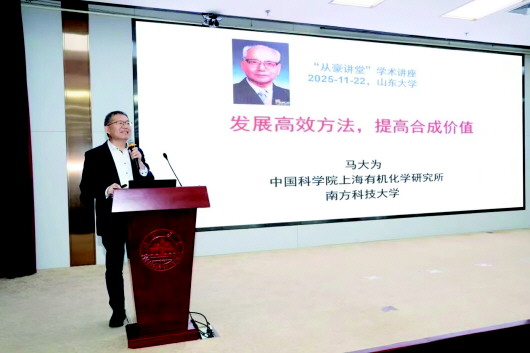 11月22日,山东大学举行首届“邓从豪奖”颁奖典礼,以此纪念这位著名化学家、教育家,并激励新一代化学人才追求卓越。颁奖环节结束后,中国科学院院士、山东大学1980级校友马大为以《发展高效方法,提高合成价值》为题,与师生展开深度交流。