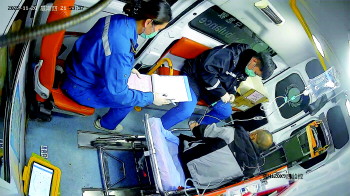 途中,医护人员通过电话与患者紧急沟通,根据其胸痛症状、疼痛部位等关键信息,初步预判为急性心肌梗死,当即指导患者原地静卧,避免活动加重病情。21时46分,急救车抵达现场,医护人员迅速展开急救,心电图检查明确提示“前间壁心肌梗死”。吸氧、建立静脉通路、硝酸甘油含服……一系列紧急处置有条不紊,并同步电话通知医院急诊科启动接诊准备。22时整,载着患者的急救车稳稳驶入泗水县中医医院,从接警到入院,全程仅用31分钟。