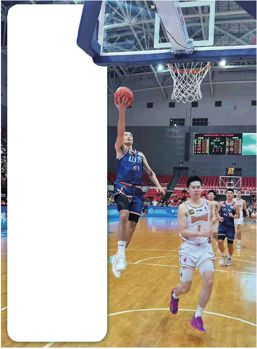 山东男篮本赛季引进的球员陈林坚(左)在比赛中上篮。