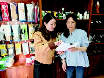 尚德社区网格员田玉坤给沿街商铺讲解消防安全知识。