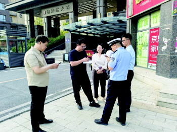 锦绣社区网格员刘俊联合物业办和交警部门召开车辆违停现场会。