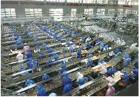初冬的平邑,遍布城乡的115家罐头加工企业迎来了一年中最繁忙的季节。车间里,自动化生产线昼夜不停地运转,将经过科学贮藏的黄桃加工成罐头。这个沂蒙山区的特色产业,如今已发展成年产70余万吨的规模,相当于全国市场上每销售3瓶水果罐头,就有1瓶产自平邑,每天都有数以万计的罐头从这里发往全国各地。