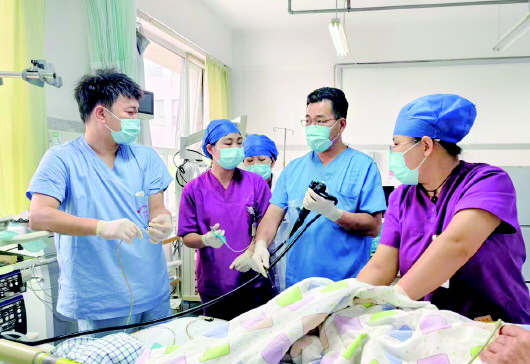 近日,滕州市中心人民医院消化内科一病区成功开展内镜下肠道菌群移植技术,为一名难治性艰难梭菌感染患者进行了粪菌移植。