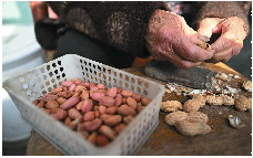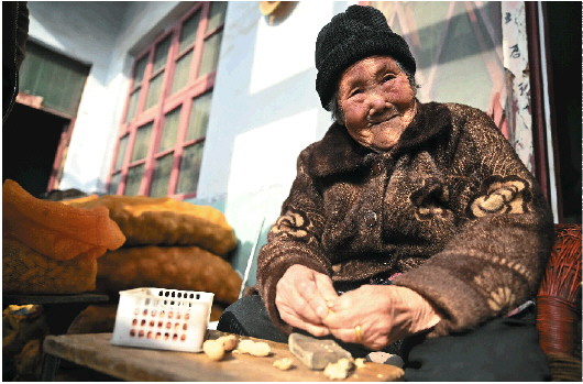 “我们下地干活去,她就在家里择择菜剥剥花生,一点儿也闲不住。你们瞧,家里300多斤的花生都被她剥完了。”儿媳妇袁法苓笑着说。12月10日,在济南平阴县孝直镇二虎庙村一户农家院里,阳光洒在101岁的杨桂英脸上,她轻轻俯身,历经沧桑的双手一刻不停地剥着花生。只见她先是用一块磨石将花生砸开一个小口,然后两手轻轻一掰,饱满的花生米就蹦了出来。不一会儿,她手边的小盒里就装满了花生米。