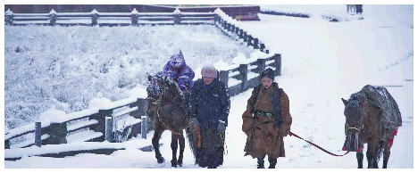 冷嘎措是观看日照贡嘎的另一个去处。上午去看泉华滩,一处缩小版的黄龙、九寨沟,感觉很好。中午一碗泡面后,就直奔冷嘎措了。雪后山难爬,就骑马上山,一趟200元。两点多就到了湖边,支上架子等六点半的日落。雪有半米深,没地方可坐,风也冷,靠不断走动保持体温。这期间,不断拍下蓝天、雪峰、湖水、马队构成的美妙画面。