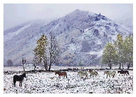 前三天,一直雨雪。从塔公镇到子美垭口附近的住处,沿路雪中拍人文小景,倒也很有情趣。高反还是有的,晚上睡不着,就不断到窗口看有没有星星出现。第四天下午多云,我们满怀期待,赶往子梅垭口,去看蜀山之王。到达观景的山坡,雄伟的贡嘎矗立在对面,刚下过雪,银装素裹,主峰时隐时现,多被白云遮挡。日落时,云还是很厚,只透出来点点光亮,日照金山是无缘得见了。