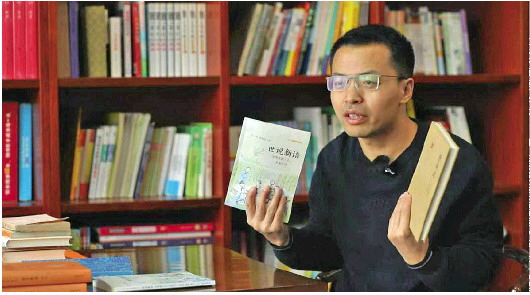 一五老师展示书籍。
