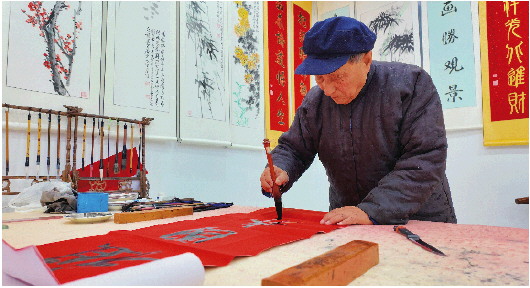 曲阜鲁城街道龙虎社区的冬日里,总有一抹红、一缕墨香格外暖人。这是年过八旬的沈庆龙正和龙虎书画社的银发老伙计们忙着为街坊们写春联。这份约定,他们守了21年,累计送出超万套春联。