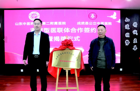 在与会领导的共同见证下,双方代表正式签署了紧密性医联体合作协议书,并为山东中医药大学第二附属医院医联体合作医院揭牌。
