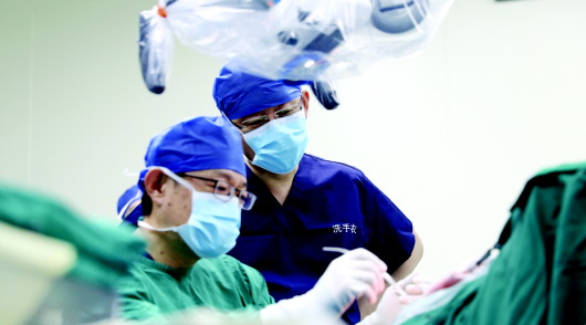 在赵国光教授指导下,张晓华、任连坤教授带领的癫痫中心团队开展癫痫中心第100台手术。