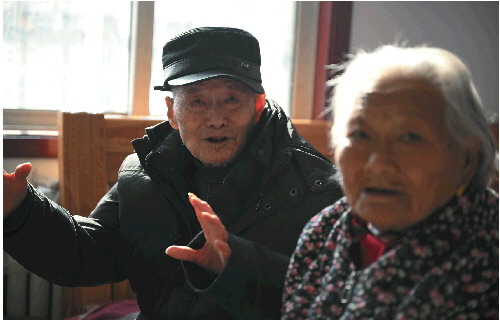 12月10日,在济南市平阴县孝直镇和圣苑社区,101岁的李明山聊起往事,犹如打开了话匣子,滔滔不绝。儿子李允安说,父亲经常忘事,有时候一天要问他好几遍今天是几号,但是对于过去的事情,他却记忆犹新,经常给人讲起。