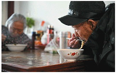 李明山老人饮食清淡,最爱吃的就是面条、包子和稀饭。