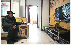 李明山老人眼睛不太好使,但是却非常爱看电视。