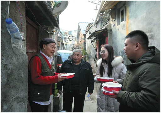 活动现场暖意融融,项目部职工与社区居民齐聚一堂,揉面、擀皮、包饺子,分工协作、默契配合。大家一边切磋手艺,一边畅谈家常、交流冬至民俗,气氛温馨融洽。随着热气腾腾的饺子出锅,众人围坐分享,品尝着亲手制作的美味,暖意从舌尖传递到心间。职工们纷纷表示,这场活动让一线工作者感受到了“家”的温暖,更拉近了与社区居民的距离。活动结束后,项目部职工代表与社区工作人员一同走访了辖区高龄、独居老人,关切询问老人的生活起居和健康状况,为他们送上亲手包的饺子及慰问品,用实际行动传递温暖与关怀(右图)。