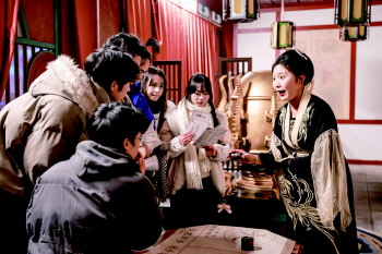 12月18日,在乐陵影视城,游客体验沉浸式表演。