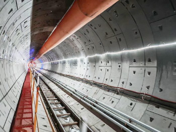一期工程土建2标施工单位为中国建筑,共含5站5区间。其中,中建二局承建1站2区间,即天山二路站、天山一路站—天山二路站区间(简称天天区间)和棘洪滩车辆段出入线区间,天天区间已于2025年7月6日双线贯通,棘洪滩车辆段出入线盾构左线于2025年10月1日贯通。
