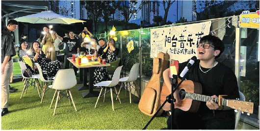 “优徕青年社区”里的阳台音乐节。 受访者供图