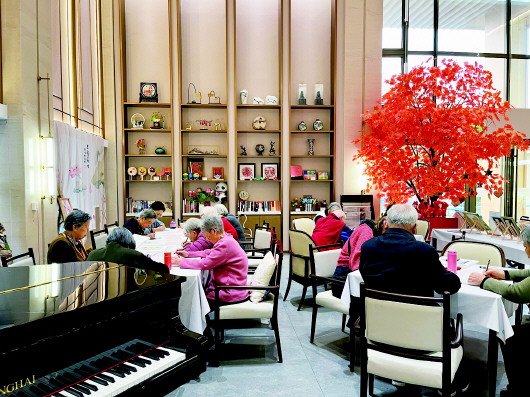 室内的适老化设计更藏着巧思。慢行系统贯穿全程,防滑地胶、走廊扶手、圆角家具、卫浴安全手柄随处可见,醒目的标识系统让长者出行更安心。“我们打造的不是养老院,而是长者的‘第二个家’。”院长杨帆介绍,共享客厅、书画室等公共空间里,邻里茶话、节日联欢常态化开展,熟悉的社交氛围让长者快速融入集体。