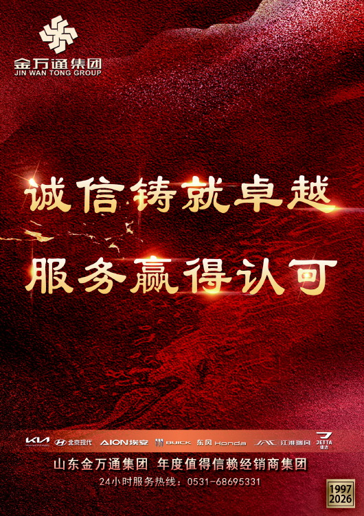 荣获“2025年度值得信赖经销商集团”,是对过去的总结,更是新征程的起点。山东金万通集团将以此为契机,继续秉持“诚信、理性、持续发展”的理念,以更优质的产品、更暖心的服务,做广大车主“永远的汽车朋友”,为推动汽车服务行业的高质量发展贡献力量。
