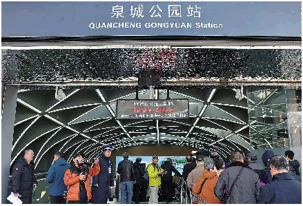 ◥在4号线泉城公园站,乘客们正在进站乘车。 记者 王鑫 摄