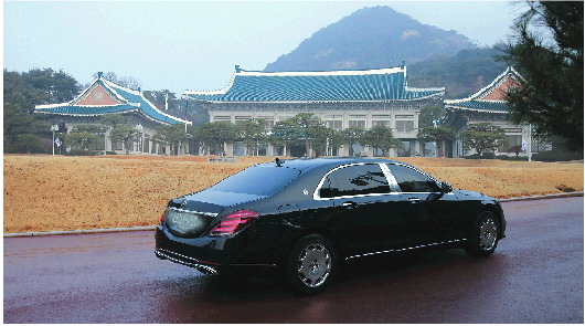 12月29日,韩国总统李在明乘坐的车辆抵达青瓦台。 新华社发