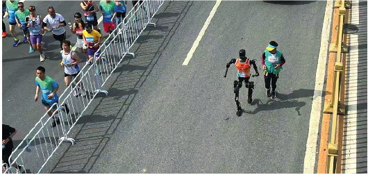 在赛道上,松延动力的“灵宝”机器人引起了记者关注。为了减负,它的电池与散热风机完全裸露,没有配备灵巧机械手和视觉识别头部装置,下半身关节直接外露便于散热,胸前大面积的风机散热孔确保长时间运转。“半马其实是综合性测试,既考验算法能跑多快,也考验硬件能不能撑住21公里,长时间工作下算法还得稳定。”松延动力首席技术官姜哲源在赛道旁接受采访时说。记者注意到,有的机器人脚下还穿着特制“跑鞋”,研发团队解释这是为了适应复杂地形,就像人类跑步需要合适的装备一样。