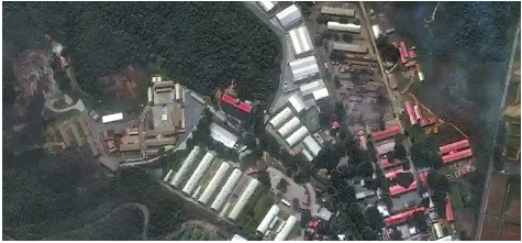 蒂乌纳堡军事基地两处地点遭袭前后卫星图对比。