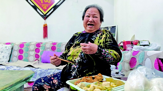 80多岁的付瑞兰也是爱心餐的老主顾。前几年她的老伴卧床,每天按时送来的午餐也给老两口减轻了家务负担。另外,付瑞兰的老伴只能吃流食,志愿者也会专门给他们带来方便打成糊的米饭。“不管什么时候,做的饭都是适合老人吃的,很贴心。”付瑞兰说。