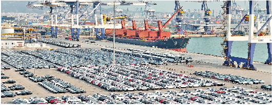 1月14日,大批国产汽车在山东港口烟台港集结等待装船出口。实体经济一直是经济发展的着力点。 新华社发