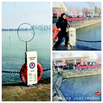 东昌湖、运河等水域面积广阔,部分区域水深可达7米,水下地形复杂且水草密布,夏季“野泳”、冬季坠冰等安全隐患突出,溺水救援难度较大。为有效防范溺水事故发生,填补公开水域应急救援装备空白,聊城市见义勇为基金会立足平安聊城建设大局,主动聚焦社会治理痛点,筹集资金10余万元,在重点危险水域、人员密集河段统筹布设救生圈、救生绳、救生杆等276套救生设施,为意外落水者搭建“生命通道”。市民在紧急情况下可快速取用施救,既能抢抓黄金救援时间,又能降低施救者自身风险。