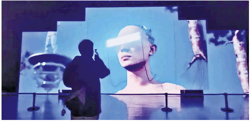 ◤第三届济南国际双年展深度融合裸眼3D、全息交互等前沿数字技术,这是观众在现场参观。 (资料图)