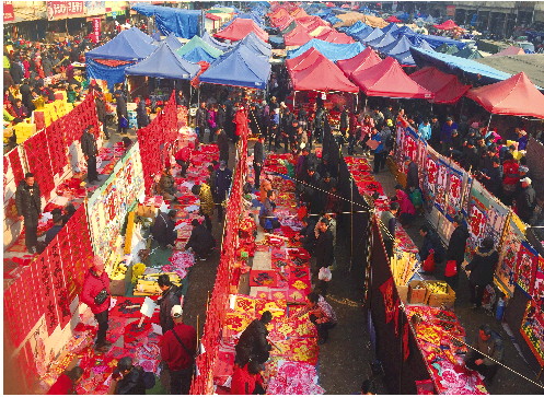 腊八节一过,李村大集上年货云集,采购的人们摩肩接踵,铺天盖地的红对联和大福字,映照着赶集人的笑脸。