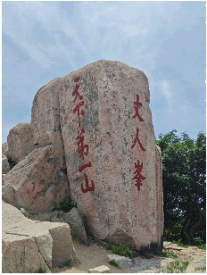 还有一种说法,与泰山的自然景观有关。泰山主峰玉皇顶西北方向有一形如老翁的巨石,名为“丈人峰”。古人尊称老人为“丈人”,因此这块石头得名“丈人峰”。峰上石刻有“丈人峰”“天下第一山”“凌霄峻极”“中天独立”“东柱第一灵区”等,并有乾隆所留诗刻:“丈人五岳自青城,岱顶何来假借名。却是世人知此惯,谁因杜老句详评。”明代文学家王弘诲曾作《泰山杂咏其五·丈人峰》:“高标孑立向天门,气象岩岩仰止存。五岳曾闻岱宗长,诸峰应是丈人孙。”以夸张的手法描写了丈人峰的高耸独立。“丈人峰”作为泰山的著名景点,进一步强化了“泰山”与“岳父”之间的联系。因泰山作为五岳之首,有“东岳”之称,故岳父也被称为“岳”“岳翁”“岳丈”等。