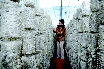 为突破产能瓶颈,该村依托“农村闲置坑塘整治”政策,将村南废弃坑塘回填平整,建成近1000平方米标准化菌菇大棚,采用“菌棒代料栽培+智能温控+循环用水”技术,实现菌菇的周年化、立体化种植。据测算,2025年新建大棚,一年两季收入达20万余元。
