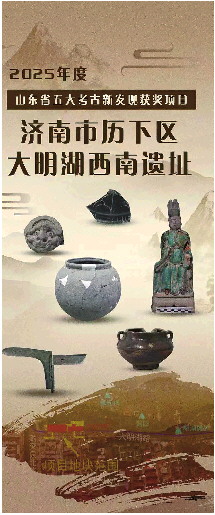 获得2025年度山东省五大考古新发现的是:淄博市淄川区老爷洞遗址、淄博市临淄区杨庄北遗址、济南市历下区大明湖西南遗址、菏泽市牡丹区南华遗址、东营市广北农场一分场一队盐业遗址。